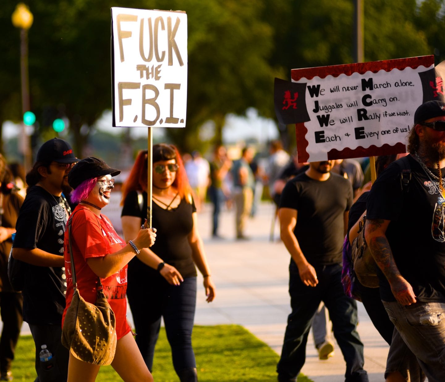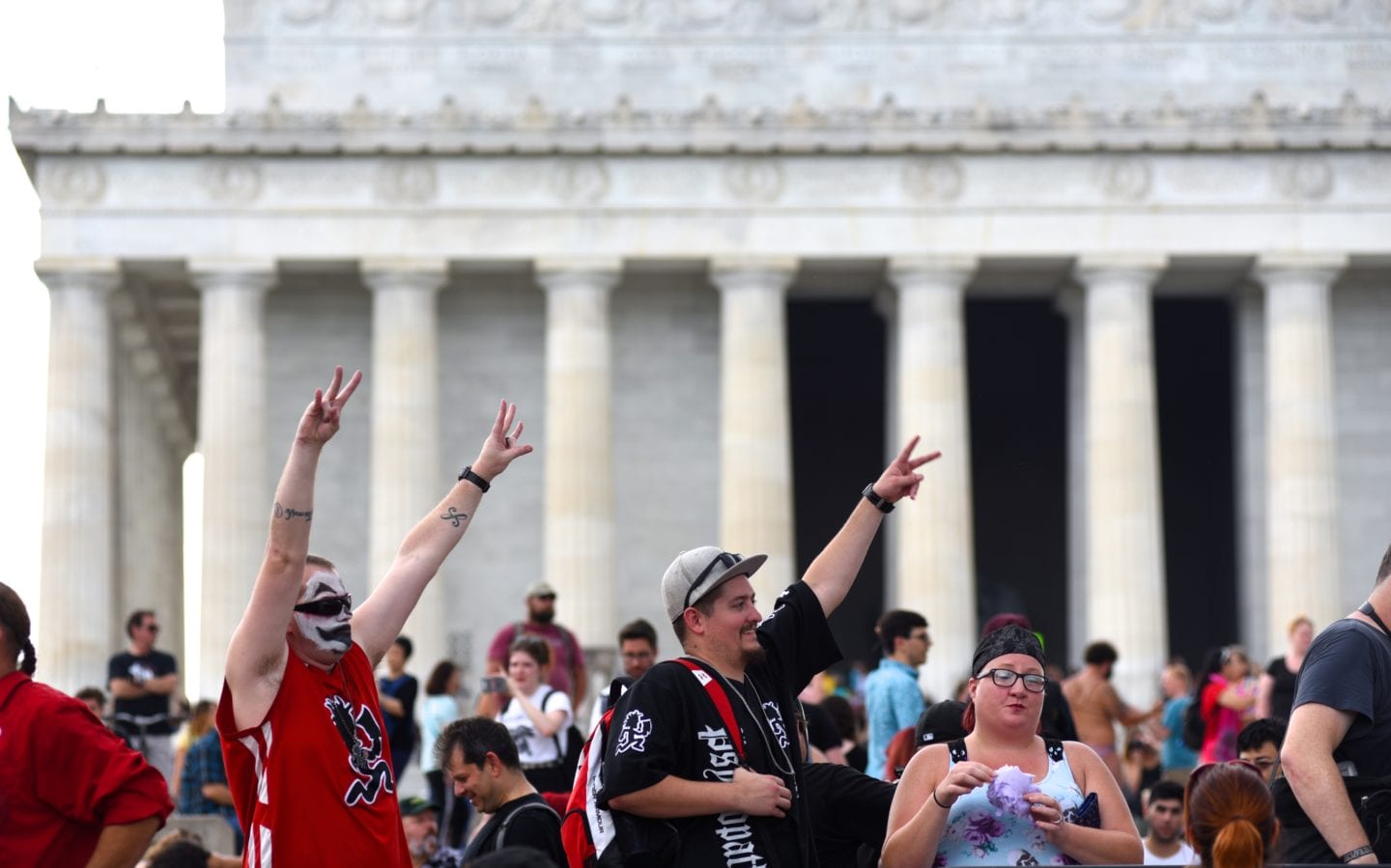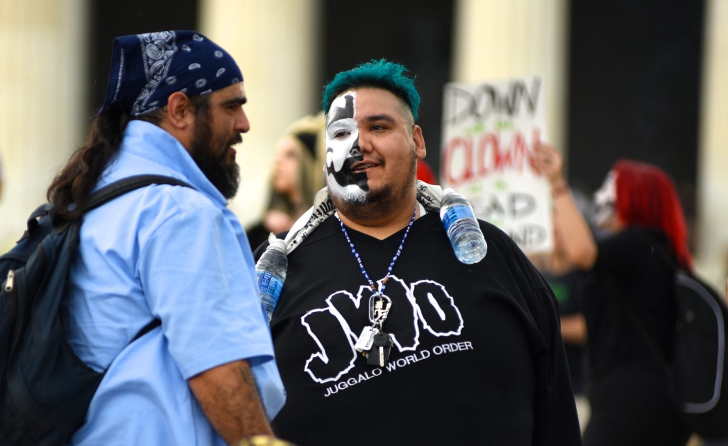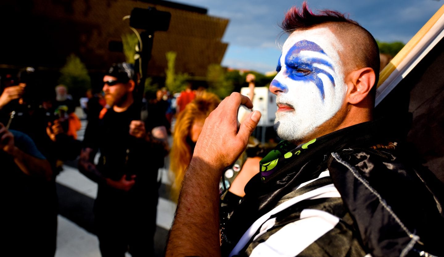 The hundreds of Juggalos gathered on the Mall were clearly outraged at the gang designation, but were remarkably polite and unflappable. Juggalos even picked up trash, not only from their crowd but from curious tourists and other outlookers. Protestors in characteristic “horrorcore” attire were welcoming and chatty, happy to explain their movement to onlookers.
