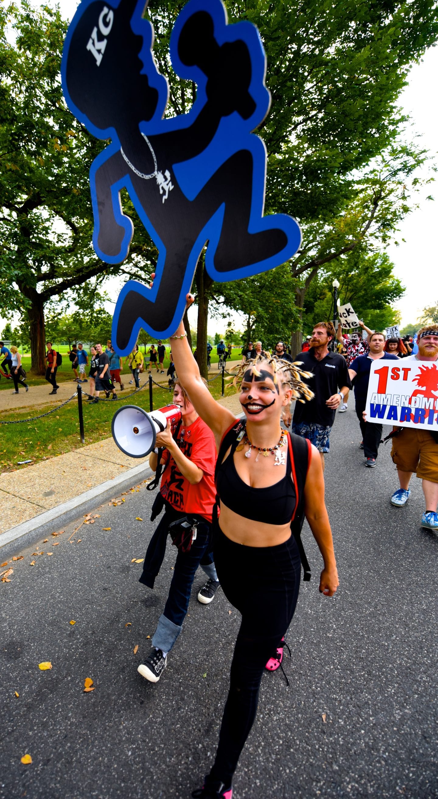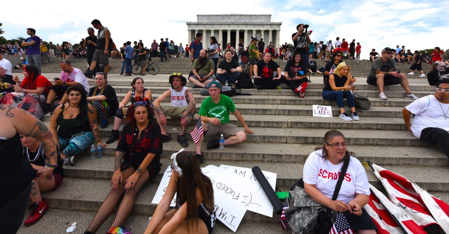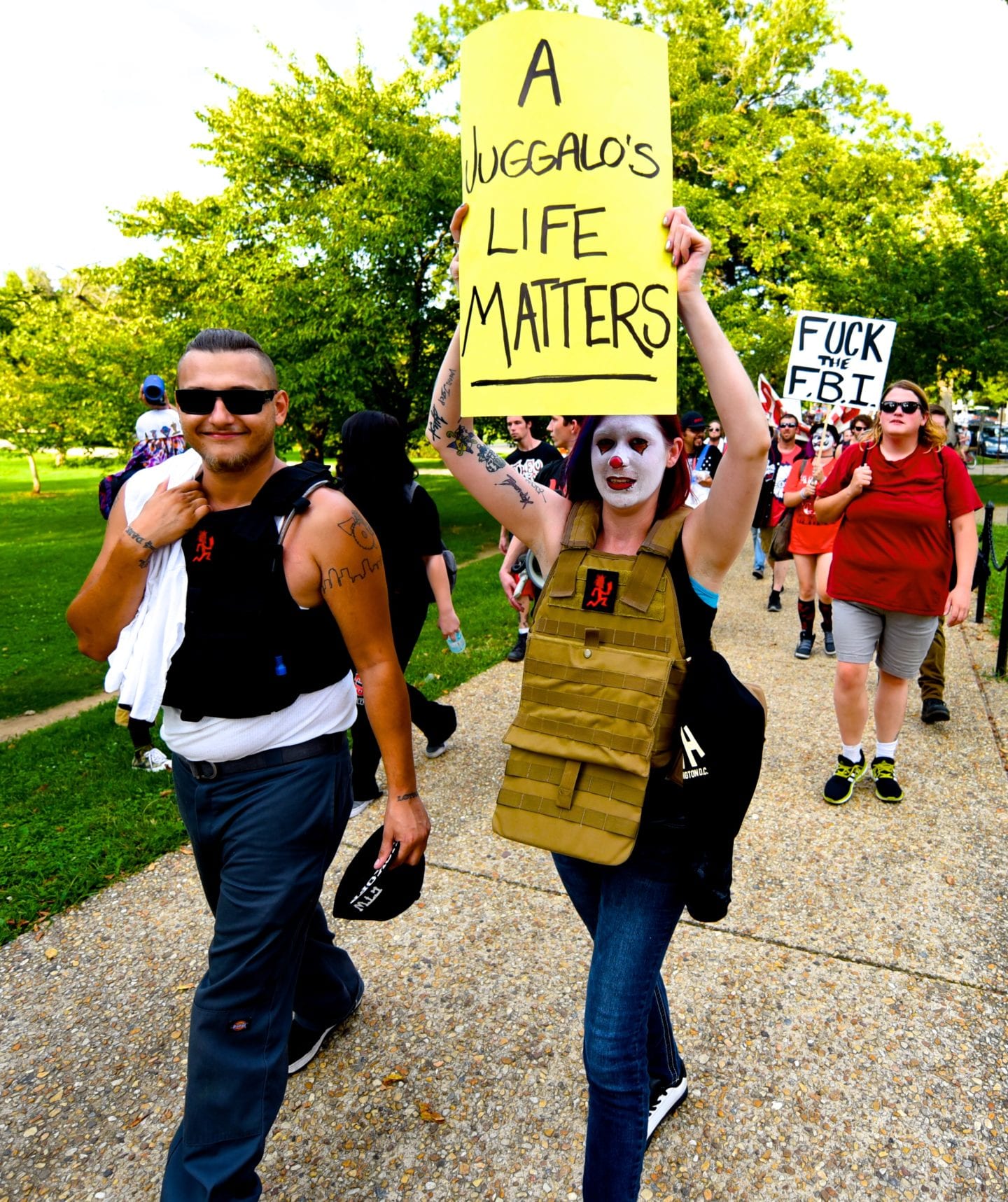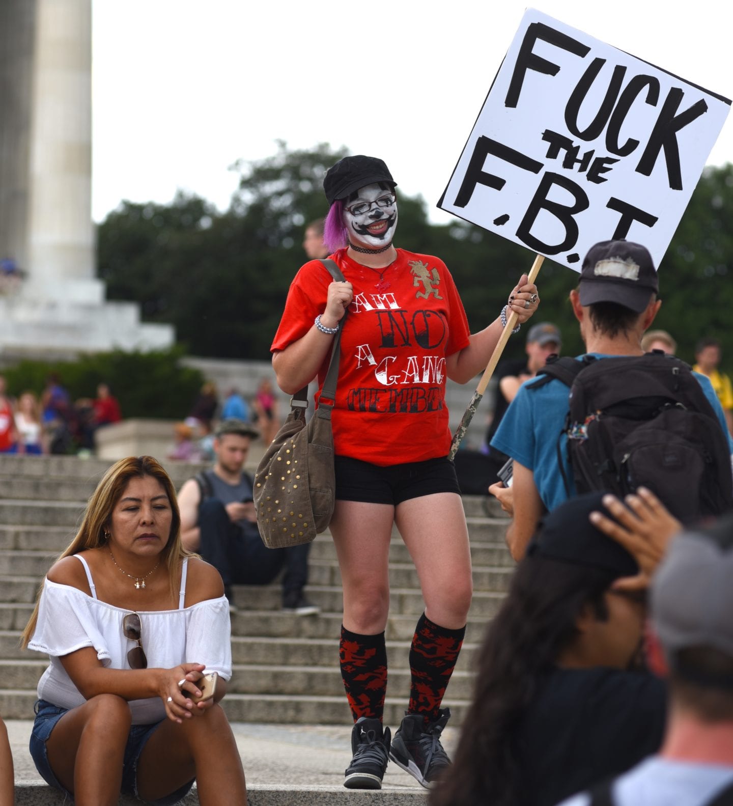 The hundreds of Juggalos gathered on the Mall were clearly outraged at the gang designation, but were remarkably polite and unflappable. Juggalos even picked up trash, not only from their crowd but from curious tourists and other outlookers. Protestors in characteristic “horrorcore” attire were welcoming and chatty, happy to explain their movement to onlookers.