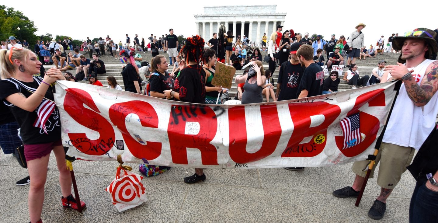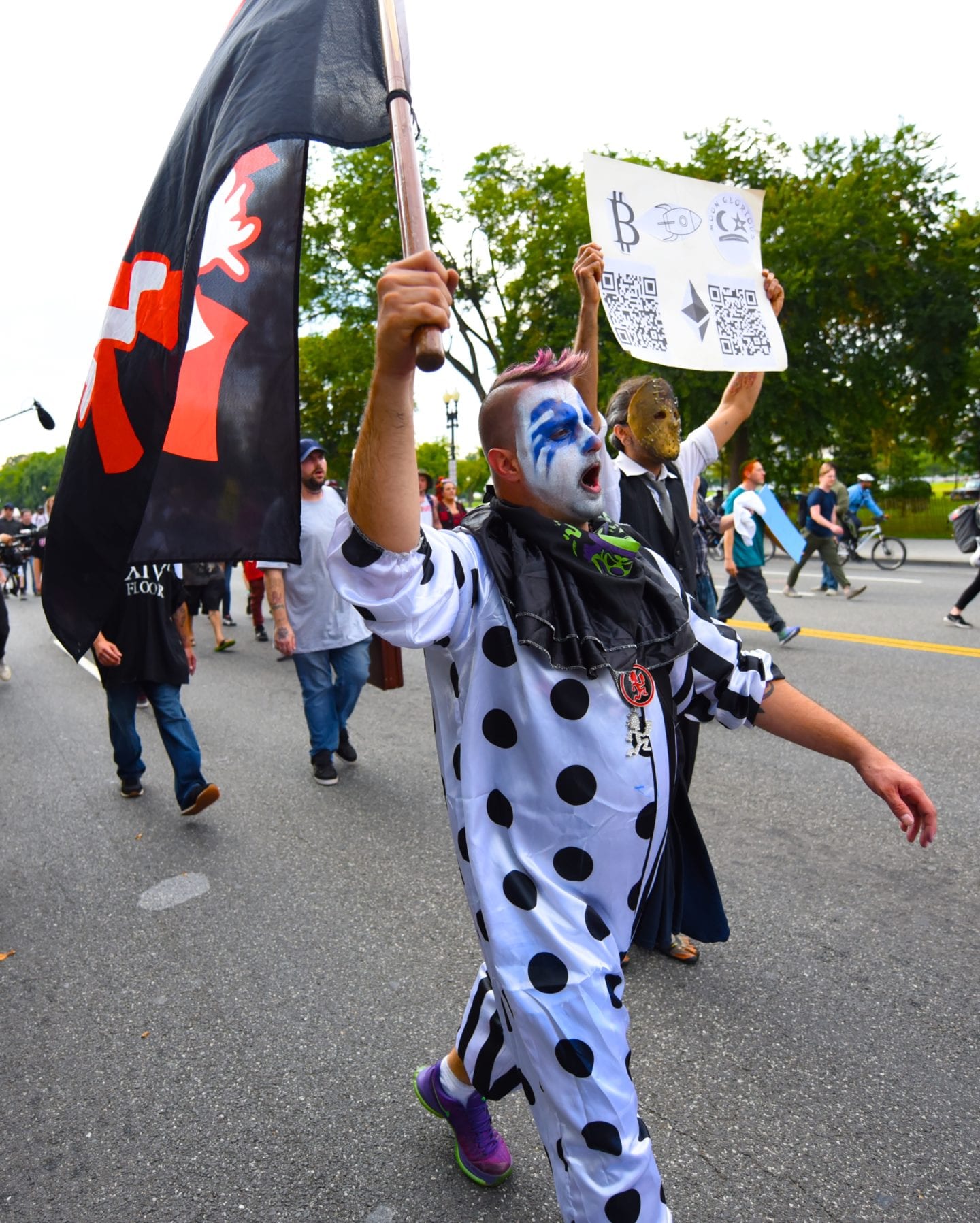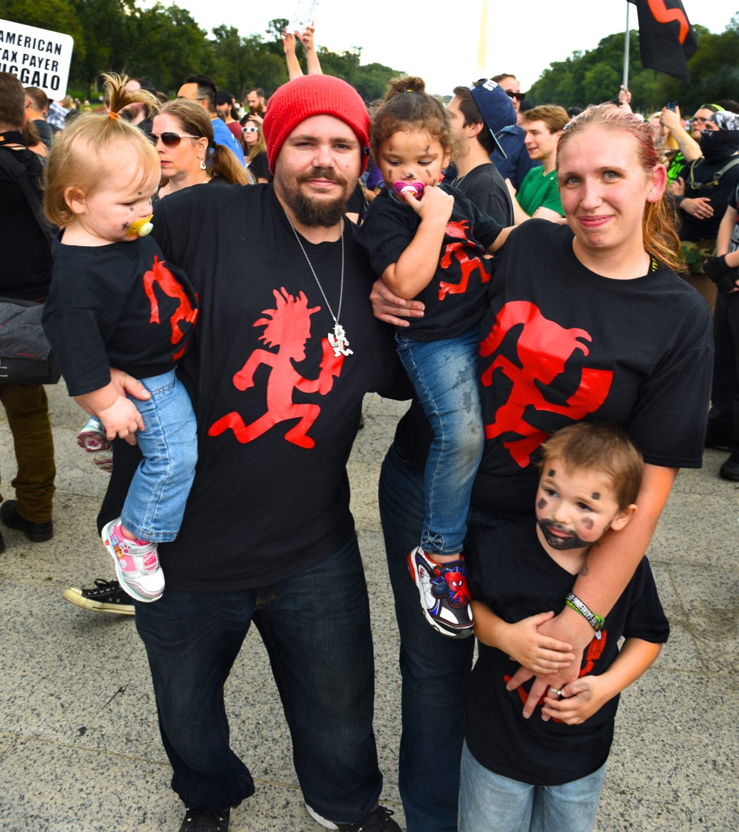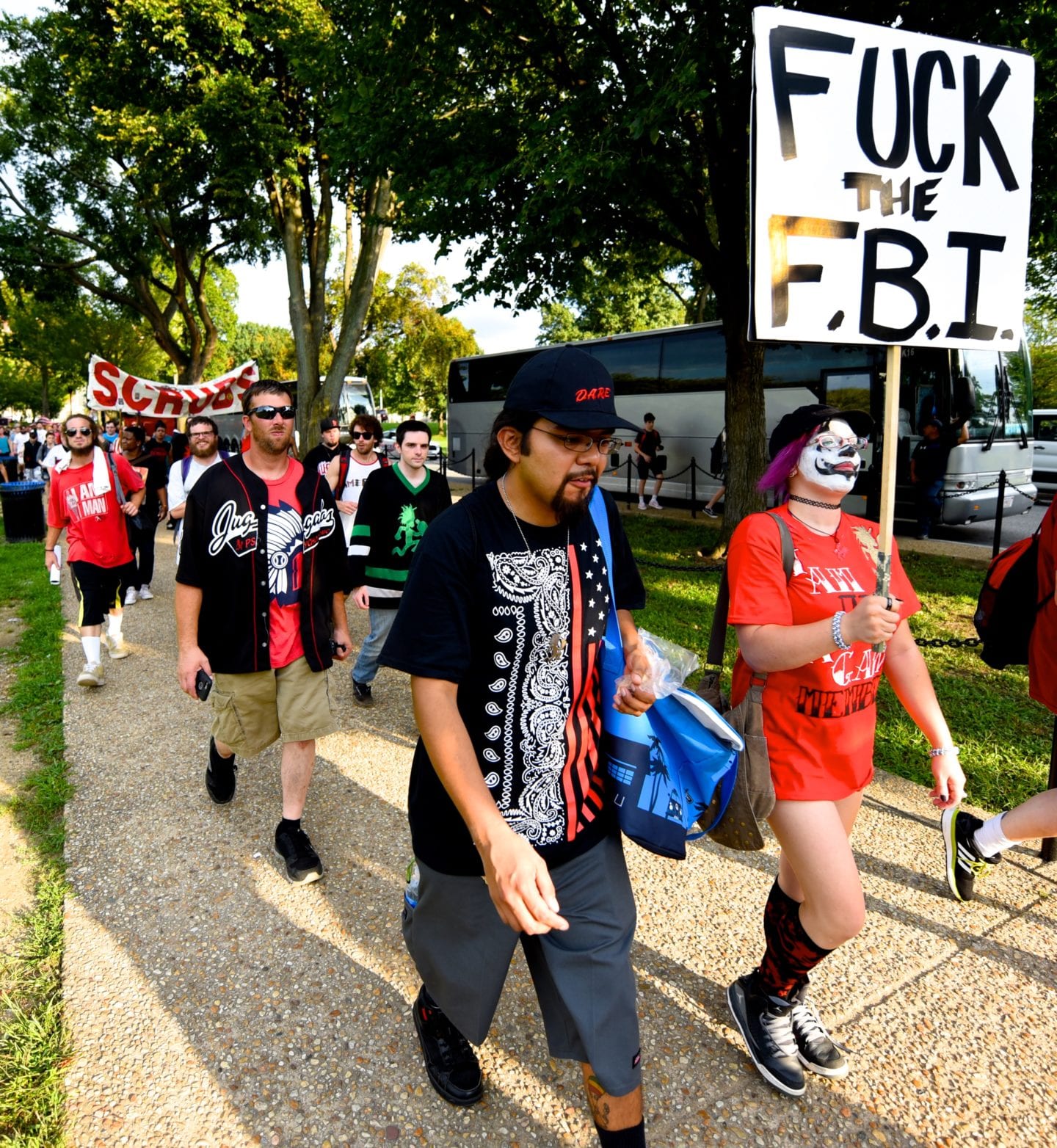 The hundreds of Juggalos gathered on the Mall were clearly outraged at the gang designation, but were remarkably polite and unflappable. Juggalos even picked up trash, not only from their crowd but from curious tourists and other outlookers. Protestors in characteristic “horrorcore” attire were welcoming and chatty, happy to explain their movement to onlookers.