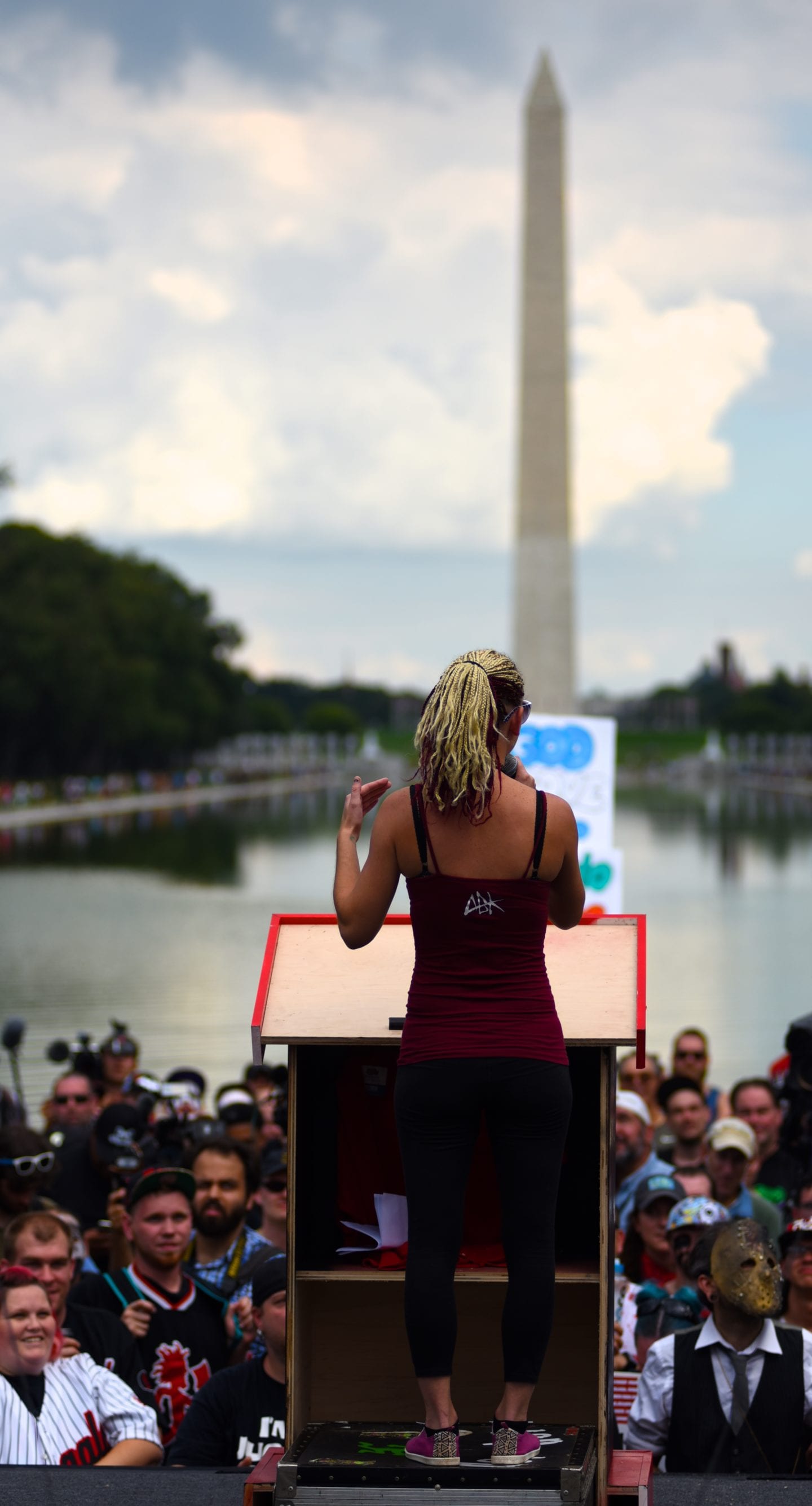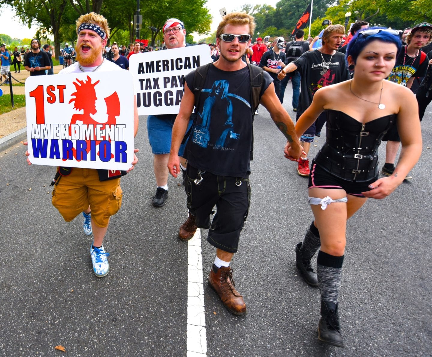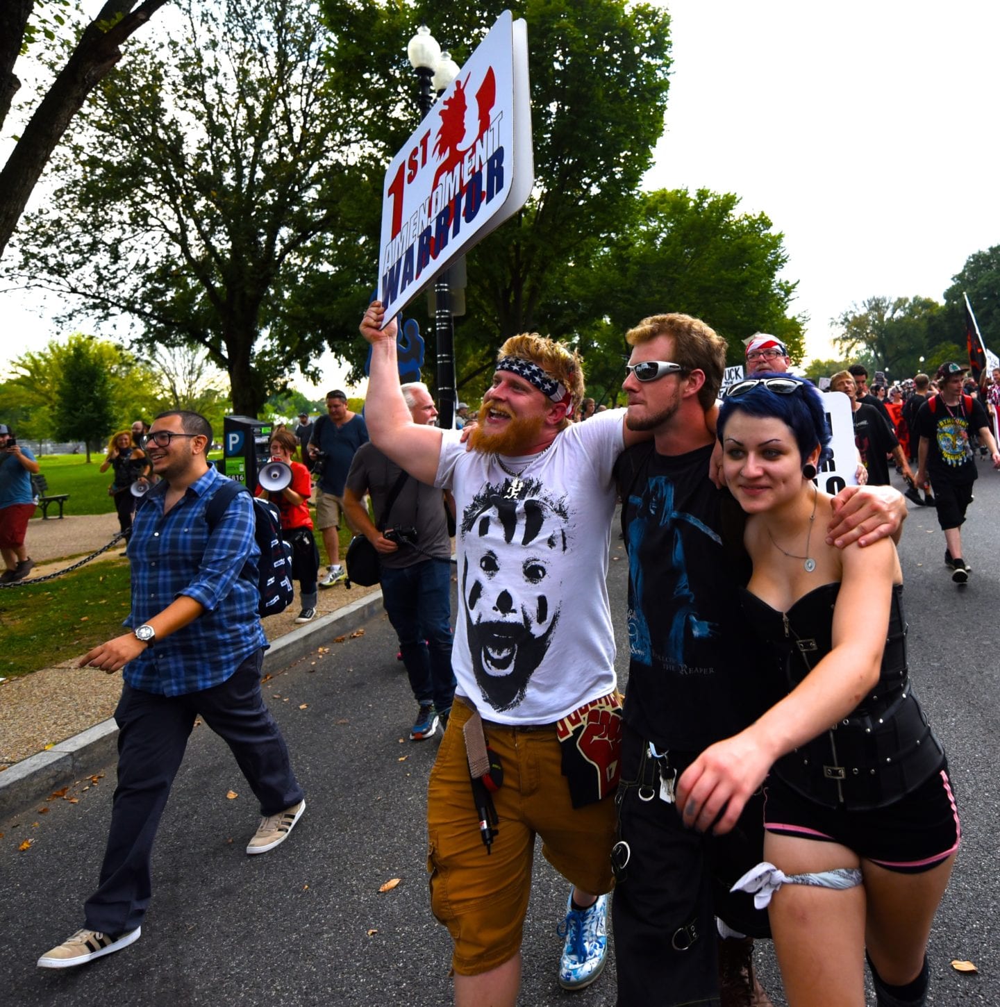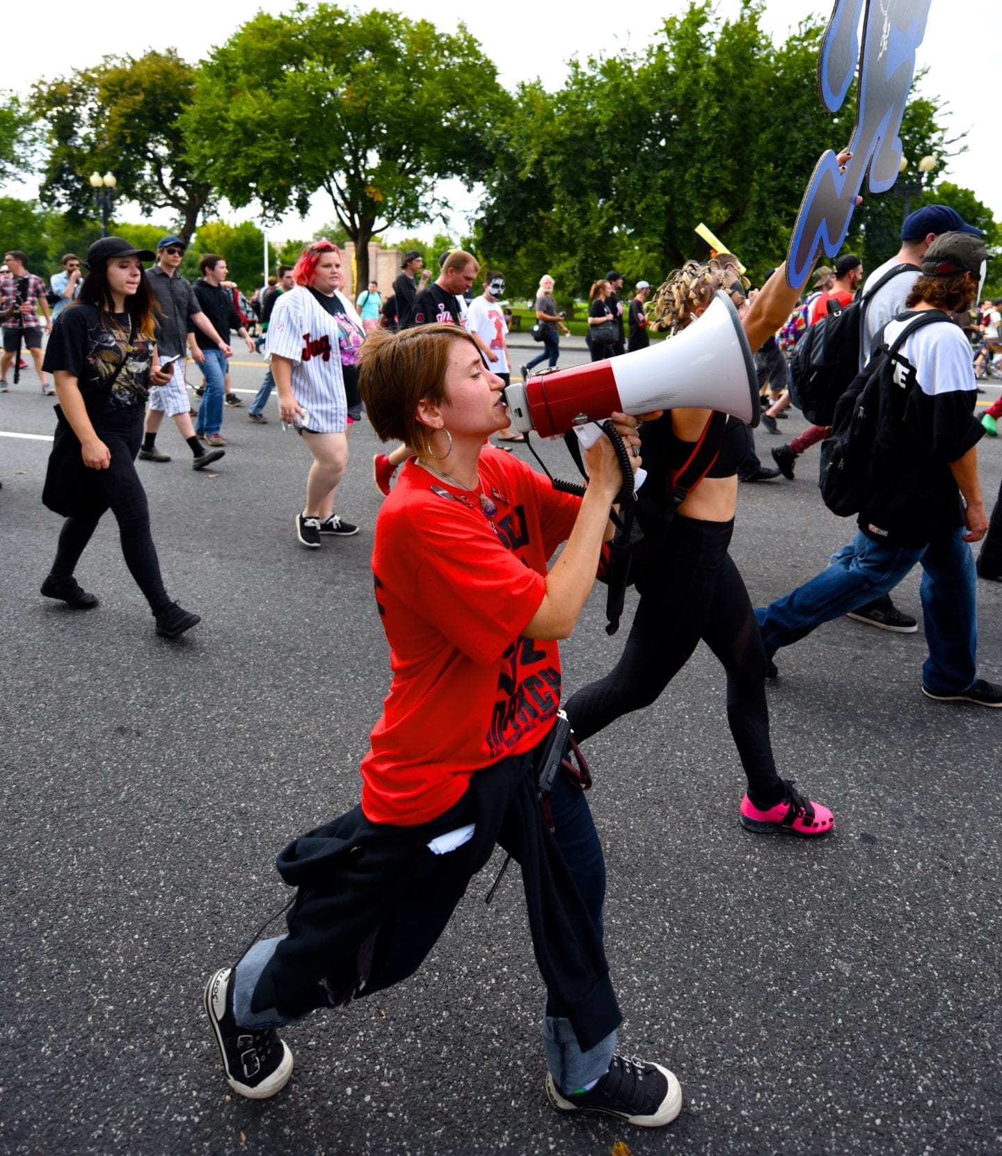 The hundreds of Juggalos gathered on the Mall were clearly outraged at the gang designation, but were remarkably polite and unflappable. Juggalos even picked up trash, not only from their crowd but from curious tourists and other outlookers. Protestors in characteristic “horrorcore” attire were welcoming and chatty, happy to explain their movement to onlookers.