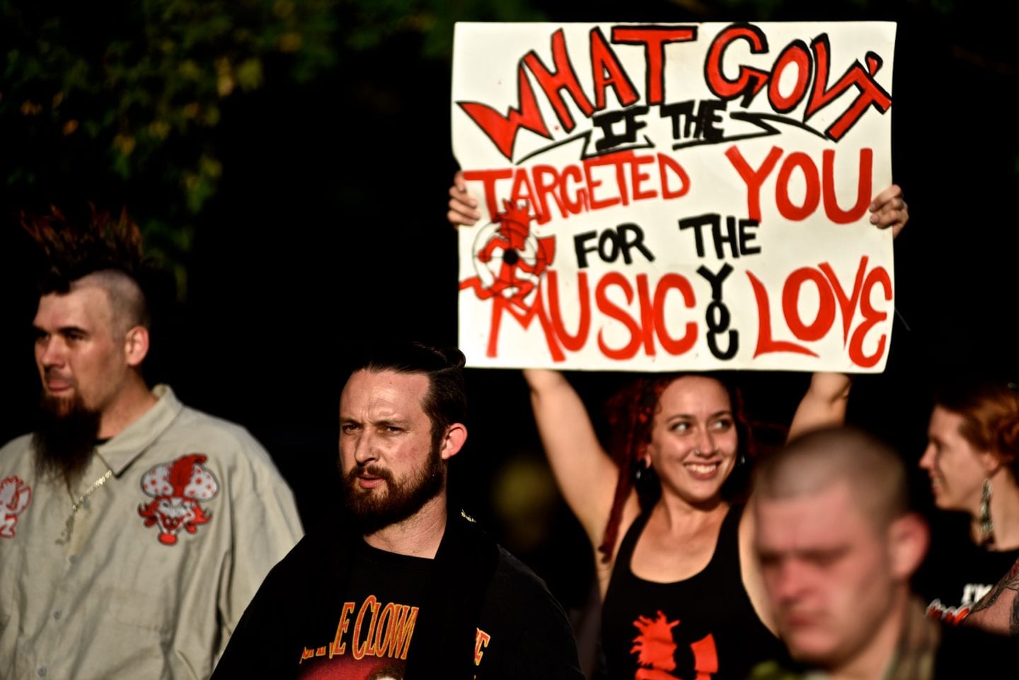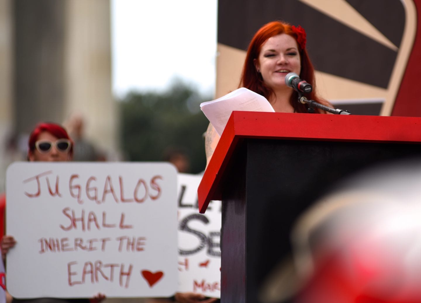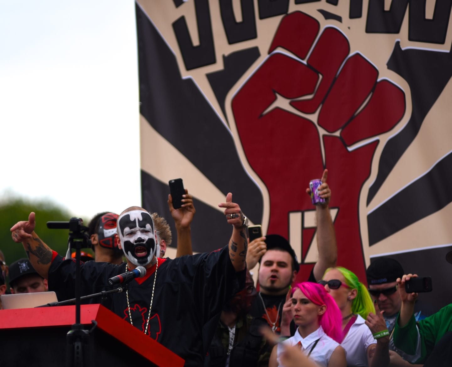 The event began with a rally and opportunity for Juggalos who had suffered discrimination because of the gang designation to share their experiences.