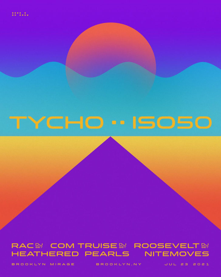 The other artists on the lineup have all collaborated, remixed, toured with, and/or been staples of Tycho’s seminal sunrise Burning Man DJ sets: RAC, Com Truise, Roosevelt, Heathered Pearls, and Nitemoves.