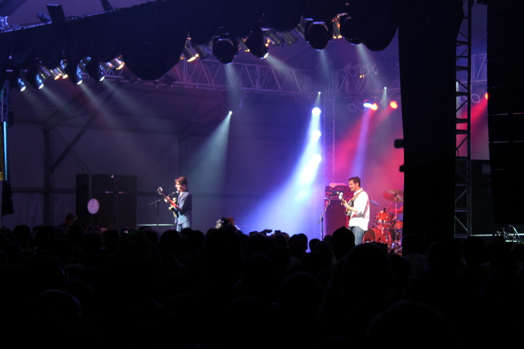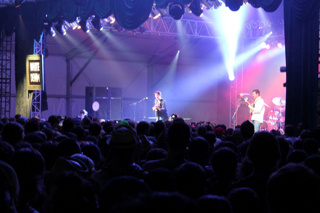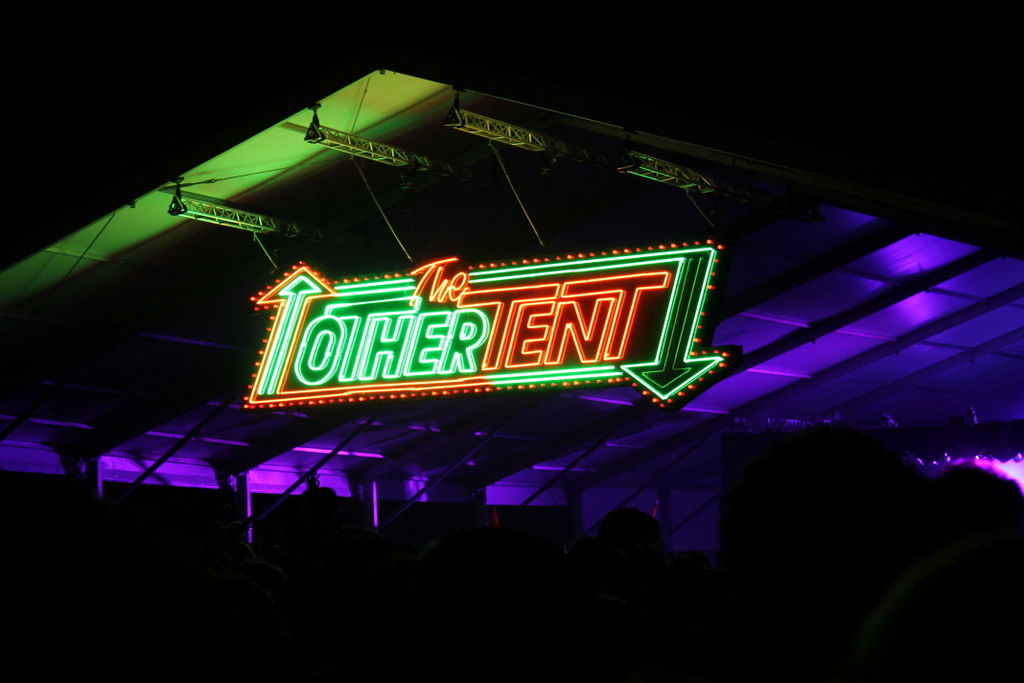 The night kicked off for us with the Austin-based quartet, White Denim, who melted the faces of an enormous The Other Tent crowd, leaving us asking for nothing more. The band wielded seamless transitions between songs, managing to cram a huge, devoted set into the conservative allotted time whilst thrashing their guitars and drum sticks around like pure-bred champions. While the whole set was a joyous demolition of restraint, the performance of “All Consolation” sent the audience into an eruptive splendor of motion, and with their quick cuts and sharp tricks, White Denim demonstrated a perfection of timing.