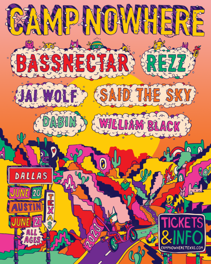 Camp Nowhere announces its returns to Texas this June, featuring an EDM/bass-lover’s dream lineup with headliners Bassnectar and REZZ coming to Dallas on Saturday, June 20th and Austin on Sunday, June 21st.