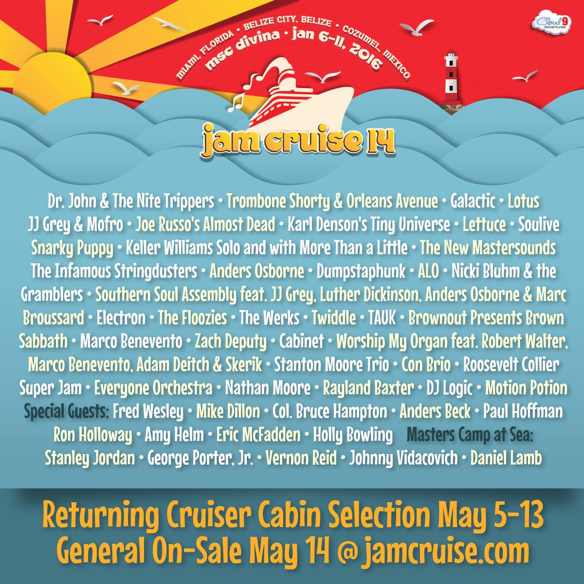 Jam Cruise and Cloud 9 Adventures just announced the lineup for their 14th annual voyage…