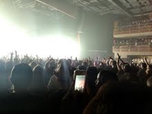 Signs informing fans to keep their phones off and in their pocket were EVERYWHERE both outside and inside the 4,000 capacity Joint, making for a more engaged and focused show-watching experience (anonymous person on the floor shared the grainy shots you can see dotting this post). From our excellent vantage point from the middle balcony across the square and acoustically sound room, we had an eagle-eyed view of what would be one of the better audiovisual live music experiences in some time.