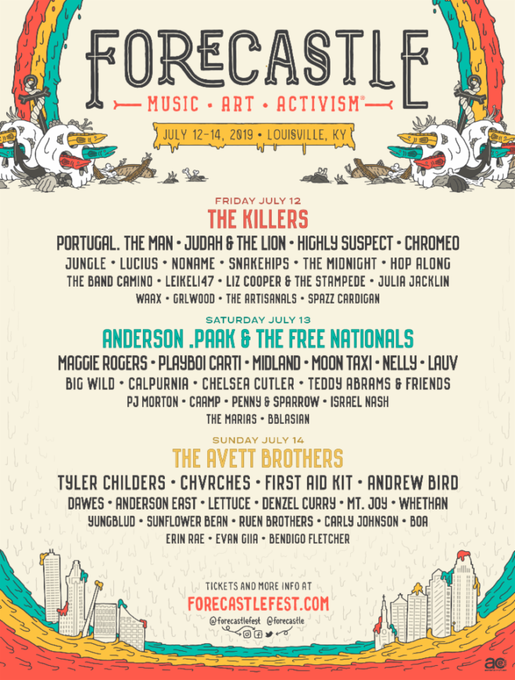 The lineup for this year’s Forecastle Festival has been announced! Set to return this July 12-14, 2019 in Louisville, Kentucky, this year’s music festival will be headlined by The Killers, The Avett Brothers and Anderson .Paak & The Free Nationals.