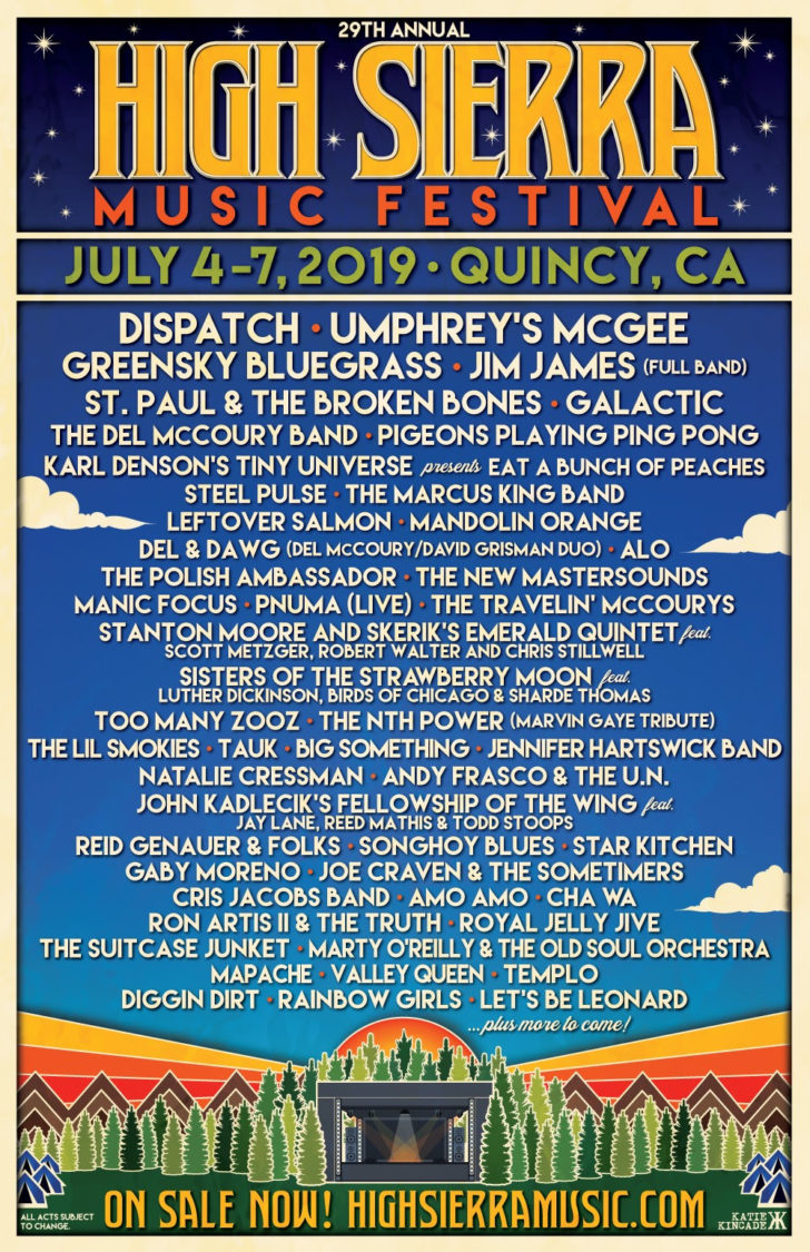 A slew of new artists just got added to this year’s High Sierra Music Festival, once again returning to the fairgrounds in Quincy, California the weekend of July 4-7, 2019.
