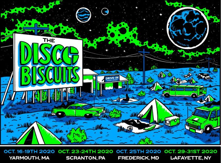 The Disco Biscuits have announced a 10 show drive-in tour starting this Friday with two sold out shows in Yarmouth, MA and wrapping up with a three night Halloween stand in LaFayette, NY.