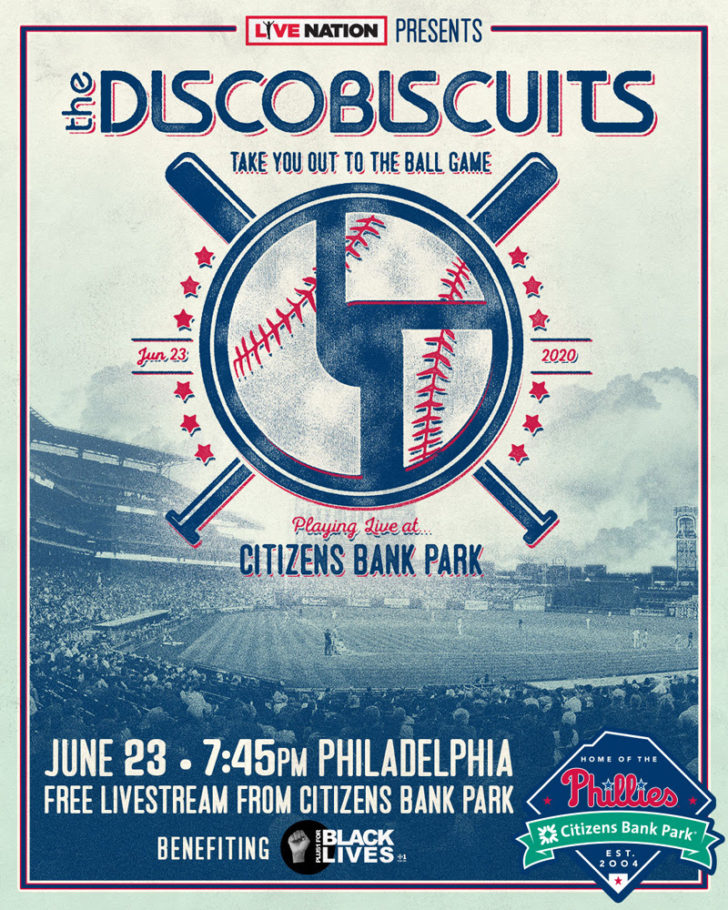 This Tuesday, The Disco Biscuits Take You Out to the Ball Game at Citizens Bank Park in Philadelphia! Join us for a free livestream from the infield dirt as the Biscuits, Live Nation & the Phillies raise money for PLUS1 For Black Lives. On June 23, tune in live at 7:45pm ET to watch the show on The Disco Biscuits’ Facebook or YouTube. To donate to PLUS1 for Black Lives visit plus1.org/discobiscuits, or text DISCO to 50155.