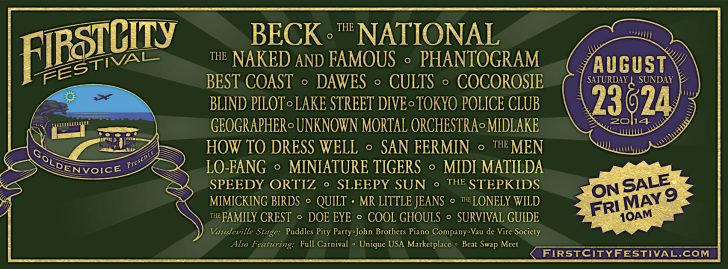 Returning again to Monterey for the second year the weekend before Labor Day, the First City Festival announced their 2014 lineup today. Headlining this year’s festival will be Beck, The National, The Naked and Famous, Phantogram and tons more announced and yet to be announced. Tickets go on sale this Friday.