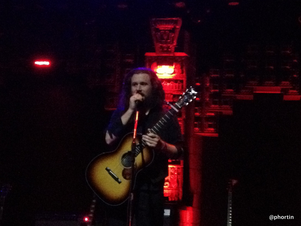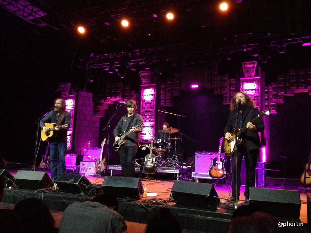 The almost two-hour performance was mostly made up of material off the just released New Multitudes album, with a few songs from each individual’s other band(s) (Son Volt/Uncle Tupelo, Centro-matic, Gob Iron, My Morning Jacket). All four musicians shared vocal duties and switched up instruments on the regular. Jim James (or Yim Yames as he’s billed for this project) handled bass guitar for most of the night, switching to acoustic guitar when needed. As evidenced in a few videos, Yim was certainly one of the more energetic bass players I’ve seen, roaming, and jumping back and forth all night. His lead bass lines did not get lost in the mix, that’s for sure. Think Flea with much longer hair. Jay Farrar led with his electric/acoustic while Will Johnson and Anders Parker switched off between drums and mostly electric guitar.