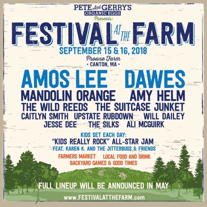 The third annual Festival at the Farm, presented by Pete and Gerry’s Organic Eggs, will return to Prowse Farm in Canton, MA this fall. Produced by Six Chair Productions, the festival will take place September 15-16, 2018. Early Bird tickets go on sale this Thursday, April 12, 2018 at 10 AM at www.festivalatthefarm.com.