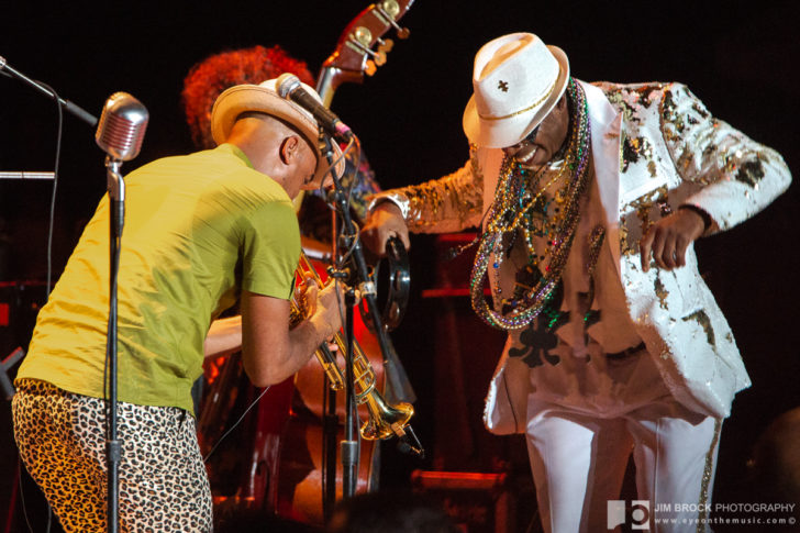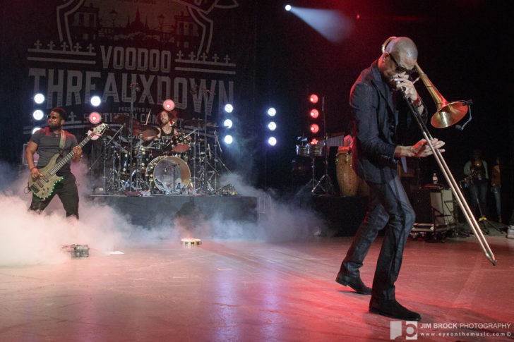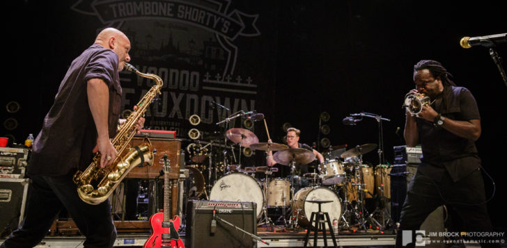 The who’s who of modern New Orleans funk is out on tour right now as the Voodoo Threauxdown, featuring Trombone Shorty & Orleans Avenue, Galactic, Preservation Hall Jazz Band, and New Breed Brass Band. Our friend Jim Brock caught the bands as they filled up Los Angeles’ Greek Theatre with the sounds of the Treme and he brought back this amazing gallery from the event. Even Dave Grohl made an appearance during the show!