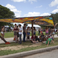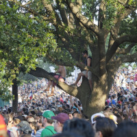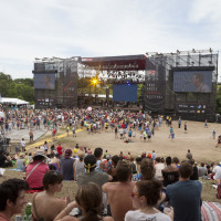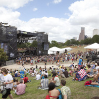 Music fans embraced the Texas heat Saturday as the sold-out crowd gathered in Eleanor Tinsley Park in downtown Houston for the first day of the fifth annual Free Press Summer Festival. On the opening day, the large crowd swarmed the park in particular during sets by Iggy and the Stooges, The Postal Service, Alabama Shakes and Calvin Harris. Sunday’s rain was a big factor, leading to lower attendance numbers overall. However, the fans brave enough to challenge the muddy conditions were welcomed by unseasonal coolness and notable sets by acts like Macklemore and Ryan Lewis, TV On The Radio, Baroness, Bassnectar and more. Continue below for the photo set from this year’s FPSF.