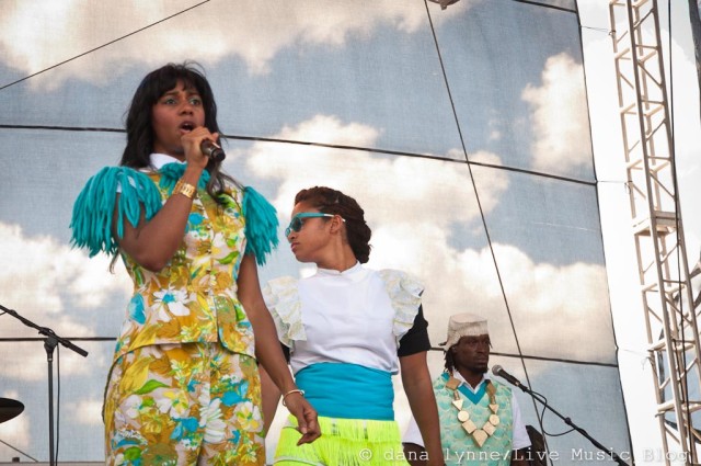 Santigold took stage mid-afternoon. She, her dancers and her band wore matching costumes inspired from lord knows where and put on a perfect, yet very odd, choreographed show. Bright greens, teals, yellows and golds from head to toe. From the pit, there was an over-abundance of photographers trying to capture it all. And from the audience perspective, the speakers in front weren’t projecting her beautiful and sweet voice. Was a shame, but she carried through it all with a huge smile on her face and with much positivity! Among her own hits, she even slipped in a Major Lazer cover, “Hold the Line” that she has played a few times in the past.