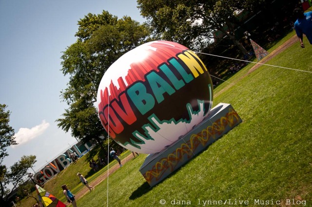 Once I got onto the grounds, I took a few moments to get the lay of the land. There were two stages on either side of the island. The weekend promised that there would be no overlapping sets, which made it far less stressful when determining who to watch and when. There were many-a-food and beverage vendors and trucks lined up around the grounds and in the middle. Croquette, bocce ball and ladder golf were set up. A huge inflatable ball was set in the very center of all it all. K.Flay kicked off the festivities while a live art installation sprouted from the VIP area to the right of the stage she was performing on. A man and woman constructed a large balloon arch. SIDE BAR: I feel like I read somewhere that they were trying to break a World Record for the largest balloon arch, but I could completely be making that up.