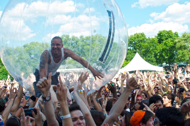 While Major Lazer didn’t appeal to me personally, the crowd he drew was having a blast. Twirling their shirts over their heads and screaming as he and his dancers put on a very lively performance. Fellow LMBer, Eric T, was down in the pit and grabbed some great close-ups of it all! Atmosphere performed next–killing it as well–followed by the very eccentric Chromeo.