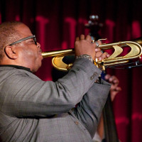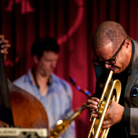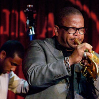 Accompanied by Brice Winston on sax, Fabian Almazan on piano, 20-year old Joshua Crumbley on bass and drummer Justin Brown, the quintet opened with Winston’s “Time to Spare” (from 2010’s Introducing Brice Winston). Winston is a formidable tenor player already performing to a full Jazz Tent at the New Orleans Jazz and Heritage Festival (and at next month’s Monterey Jazz Festival) and has a great chemistry with Blanchard hat goes back some 10 years. He briefly set the theme, straight ahead with quick corners, before Brown jumped in and the quintet ran with it. True to form, Blanchard moved off stage as the five became three, Winston reached down for the little more that seems to come so naturally in a later set.