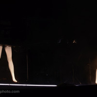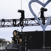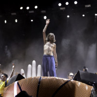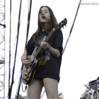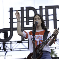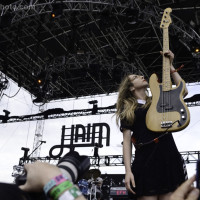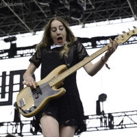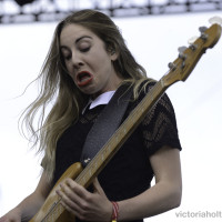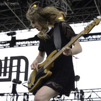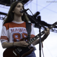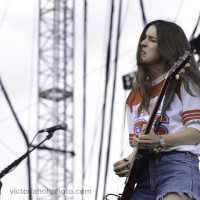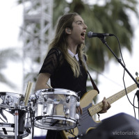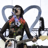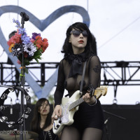 Dum Dum Girls win the award for most see-through outfits of the weekend, as each of the three front-women had their own version of covering up while still being quite revealing. One rocked a poncho made of fringe, another wore a high-waisted striped see-through skirt over darker layers and a crop top, and the third, and most eye-catching, wore a mesh bodysuit with only very small shorts and black pasties. Casual passerby stopped in their tracks at the sight of what looked like big black nipples on the jumbo-trons. Once captivated by the sight, viewers stayed for the sounds.