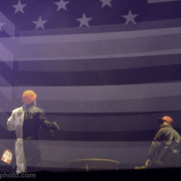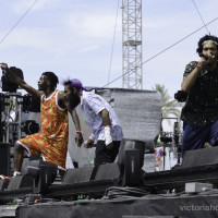 The day’s gangsta rap continued with A$AP Ferg, the badass lady rock continued with HAIM, and more soul sounds came from Aloe Blacc. The night turned electronic as Shlohmo, Woodkid, Chromeo, and Girl Talk got people dancing. Girl Talk takes the cake for guest stars for Friday night, bringing up such greats as Busta Rhymes, Tyga, Freeway, and Waka Flocka Flame. Next were The Knife with their new project/album, Shaking the Habitual, featuring about 20 synchronized dancers and an array of unique instruments. The headliner was Outkast, on their second weekend performing live since 2007 (more info on that in my Top Ten Moments post). Closing out the night in the small Gobi Tent were Anti-Flag, still going strong, commanding circle pits and educating the masses about our corrupt government.