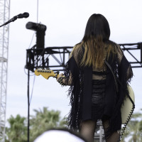 Friday started out muggy in the mid-80s and turned windy and chilly as the evening progressed. The sky threatened to rain, but held it together and the dark clouds soon passed. Despite the not-so-sunny weather, I was glad to be spared the dust storm of the weekend prior. Flatbush Zombies opened the day on the Outdoor Stage, bringing their blend of gangsta rap and lyrics like, “I don’t give a s***, ’cause ignorance is bliss.” At one point, perhaps in homage to the 20 year anniversary of Nevermind, they played “Smells Like Teen Spirit” and the crowd went buck-wild. It was great to see a rap crowd so thoroughly loving the rock reference. Soulful ZZ Ward and her band rang in the afternoon in the Mojave Tent.