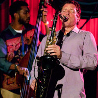 The ensemble of Blanchard on trumpet, Brice Winston on sax, Fabian Almazan on piano, Joshua Crumbly on bass and Justin Brown on drums came through town about a year ago and their annual swing this year was eagerly anticipated. Blanchard is a generous bandleader, and he often stepped aside for extended explorations by his bandmates. Pianist Almazan, in particular, shined throughout the set, and especially on his own “Pet Step Sitters Theme Song” (from Magnetic). Teasing the theme out of a prolonged and elegant solo intro,, Blanchard himself used electronic effects (octave dividers and filters), not to obscure, but to add emotional color and passion to his runs, often to thrilling ends. The 21-year old Crumbly has been playing with Blanchard since he was a wee lad (or at least his teens), no small feat, and the assured and intuitive interplay of Winston with Blanchard and his mates runs deep. Drummer Brown, pushed and meshed at a higher level, as you would expect for a player who has toured with Ambrose Akinmusire and recorded with many young jazz luminaries (Blanchard himself said he can’t even wrap his head around some of the ideas Brown comes up with). Blanchard was affable throughout the set, at one point chiding the LA crowd for giving Brown’s hometown of Oakland a warm reception after coming from a gig in the Bay Area where the regional affection was not really mutual. This was a stellar evening of music all around. Truly magnetic.