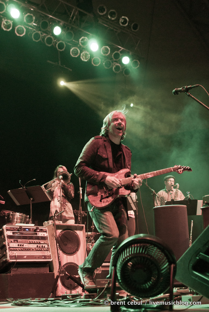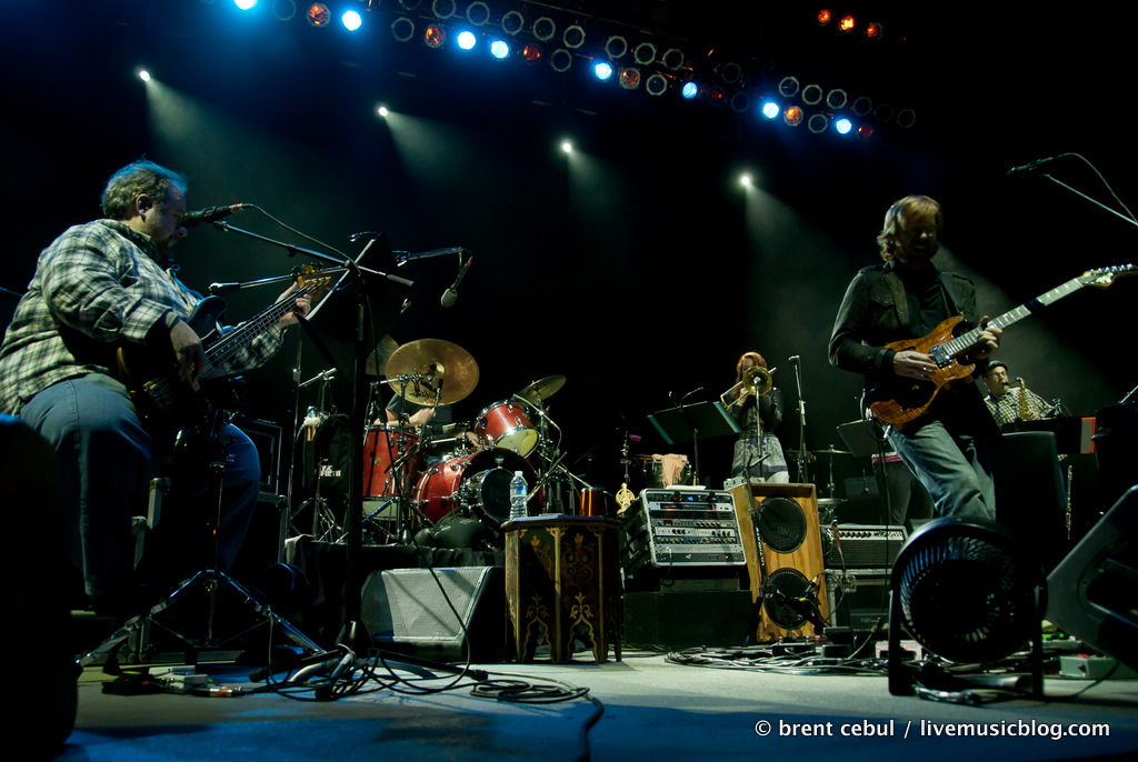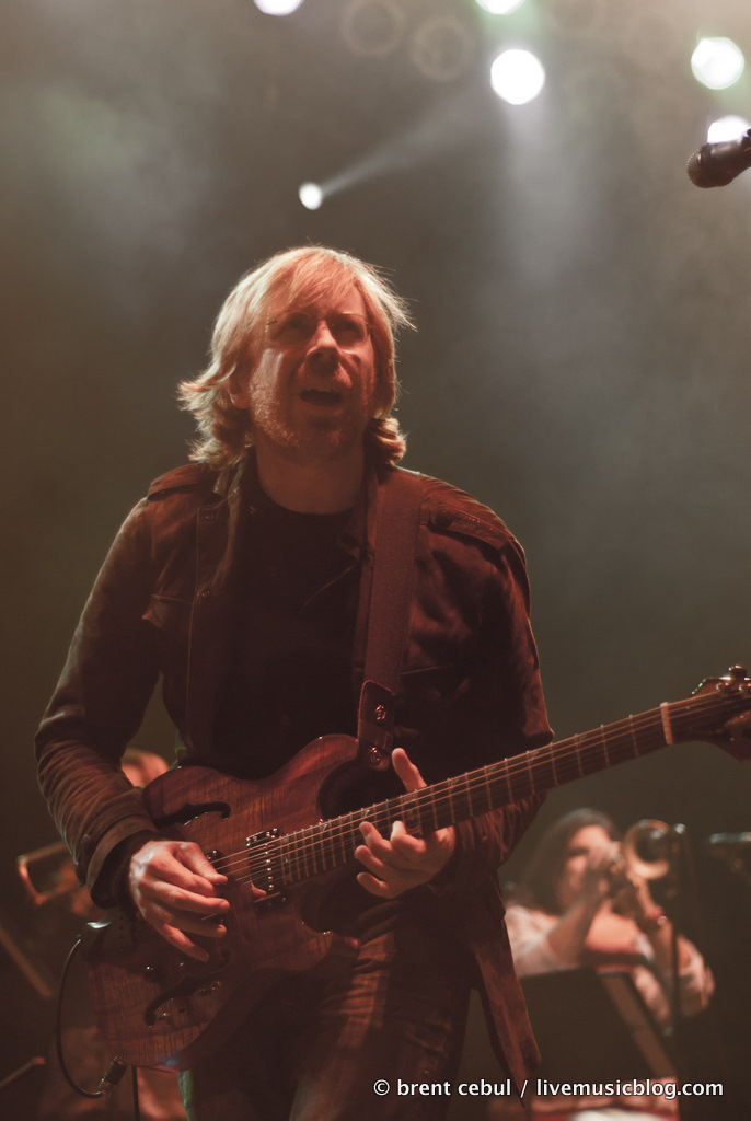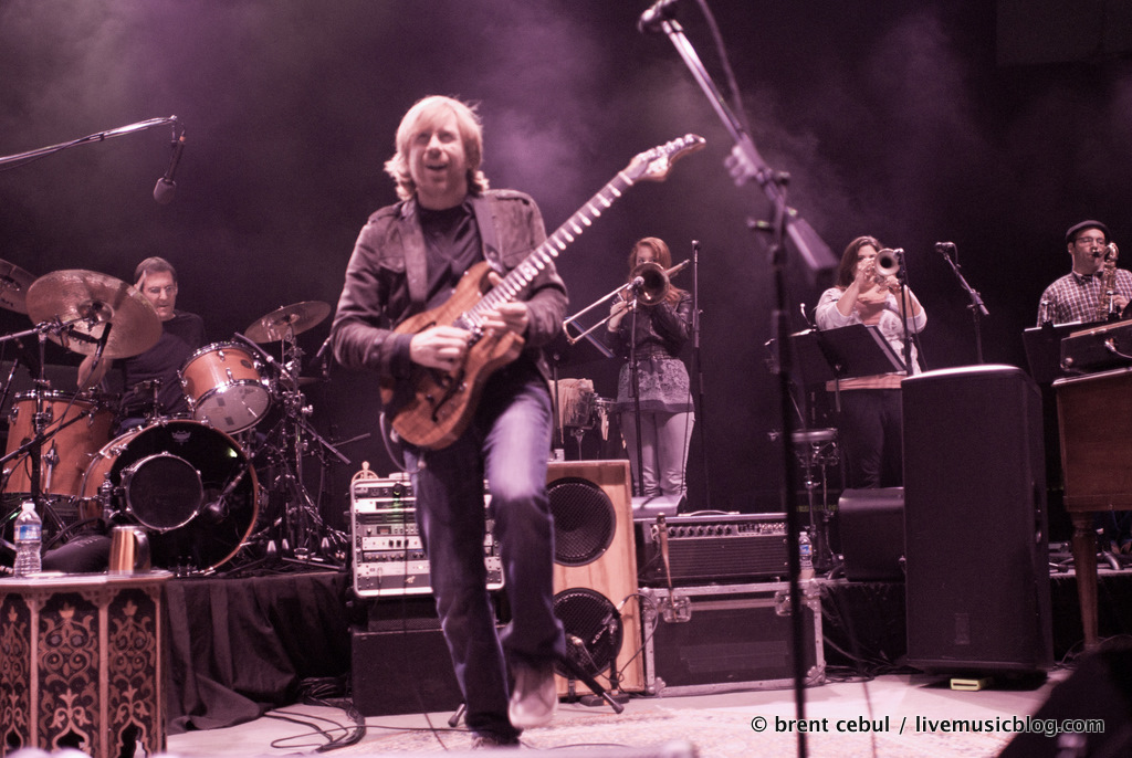And when the lights when down, Trey delivered a show that reflected the mood. Buoyed by Tony Markellis’ bass, the band delivered reliable renditions of TAB standards, now classics. Whereas once Trey might have used Tony’s steady thumping as a foil for his own wide-ranging explorations, Trey and the horns mostly stayed on message: tight and funky. A few new ballads dot the TAB repertoire, too, perhaps a reflection of Trey’s own older, gentler approach to music-making.