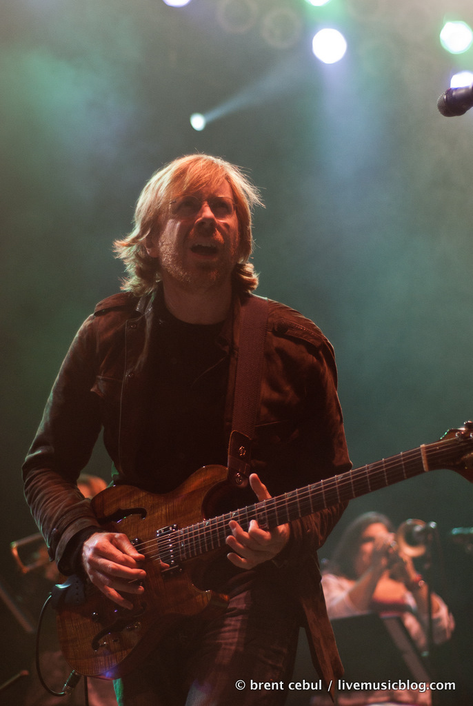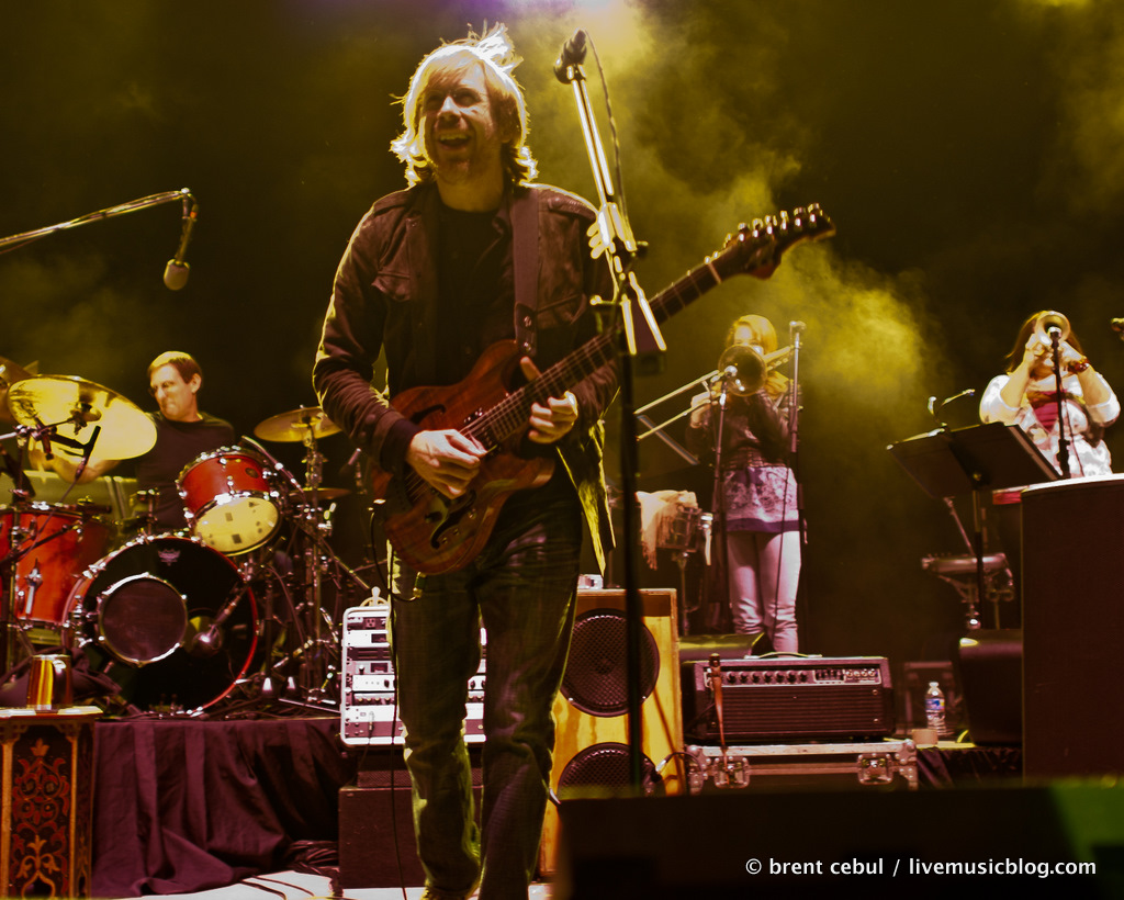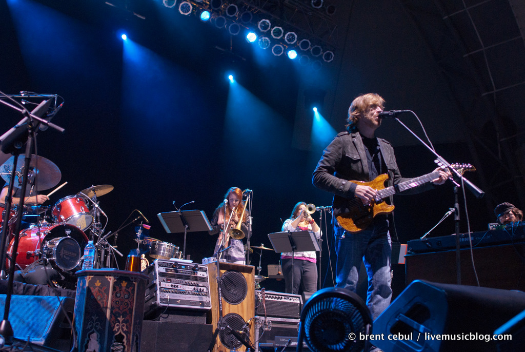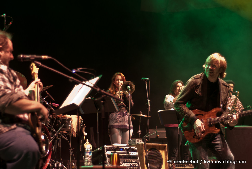 But the guy who seems to love TAB the most is, of course, Trey, himself. Radiating a vibe of proud papa rather than mad wizard (recall the guitar hoisting antics of earlier tours), Trey introduced the band, noting that Natalie Cressman – once-upon a time the kid wonder trombonist – is soon getting married. Russell Remington even worked some wedding march sax teases into a couple of jams. Rounding out this rendition of TAB – arguably the best – were Russell Lawton (drums), Ray Paczkowski (keys), and Jennifer Hartswick (horns, vocals). Smiles all around. You can picture this bunch working on crossword puzzles together.